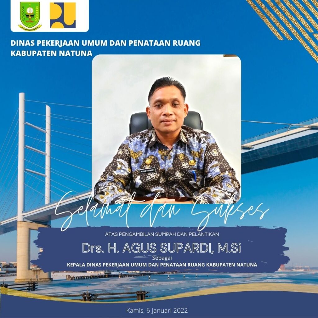 Selamat dan sukses atas pengambilan sumpah dan pelantikan Bapak Drs. H. Agus Supardi, M.Si sebagai Kepala Dinas PUPR Kabupaten Natuna.